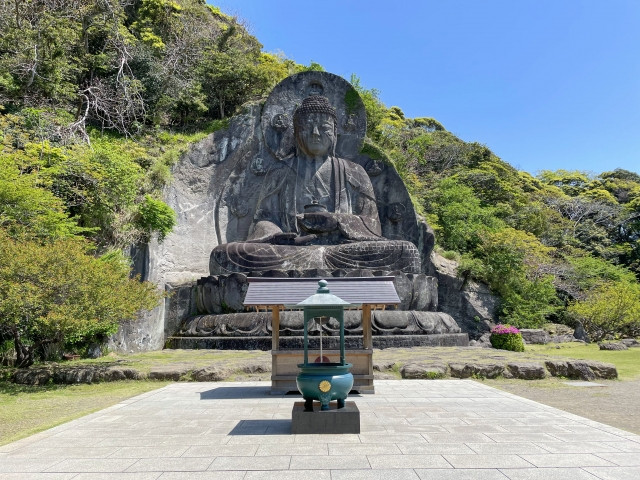 El Gran Buda de Nokogiri, llamado popularmente Nihon-ji Daibutsu (日本寺大仏), aunque en realidad se trata de una figura de Yakushi Nyorai (el buda que verte medicina al dolor espiritual), fue tallado en 1783 y desde entonces ha sufrido cuatro reconstrucciones llegando hasta nuestros días como lo conocemos, tras su última reconstrucción, en 1969