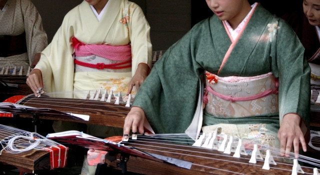 El koto se ha desarrollado como un instrumento musical exclusivo de Japón desde que se introdujo desde China en el período Nara. Se coloca una herramienta llamada clavo en el dedo y se toca el hilo de seda estirado en el torso.