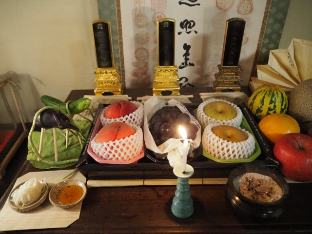 Obon es un evento tradicional que se lleva a cabo del 13 al 16 de agosto y representa un servicio conmemorativo a los antepasados. En Japón, se piensa que "cuando mueras, irás al otro mundo", la idea general es que el alma regresará a este mundo solo durante el festival de Obon. Los pepinos y las berenjenas se utilizan para fabricar caballos para que los antepasados retrocedan a este mundo por un instante, y se preparan "hogueras" para ver su regreso, al otro.