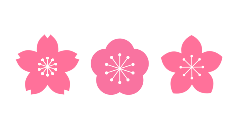 La temporada de sakura en Japón generalmente se extiende desde fines de marzo hasta principios de mayo y las flores comienzan a florecer en el sur del país hasta que llegan a Hokkaido, la inmensa isla al norte. Cuando comienza la primavera, los primeras en florecer son los ciruelos, ume (梅). Florecen en febrero y sus pétalos son redondeados. En marzo comienzan a aparecer flores como sakura y una habitualmente confundida con Sakura pero que no lo es: melocotón, momo (桃).