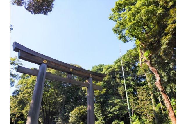 Salah satu pemandangan menarik ketika tiba di kuil Meiji adalah banyaknya pepohonan yang mengelilingi kuil tersebut. Sesuai informasi dari Japan National Tourism, kawasan ini dikelilingi lebih dari 120.000 pohon. Pohon-pohon ini merupakan donasi dari orang-orang di seluruh Jepang.