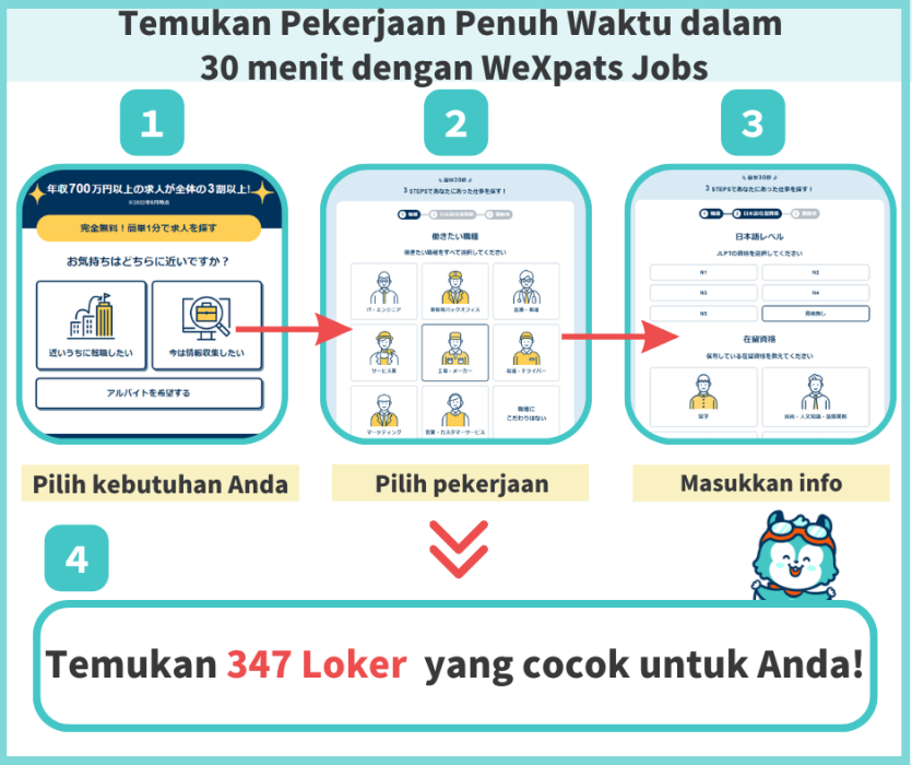 Mencari pekerjaan sendiri dengan mencocokkan kualifikasi kamu seperti level bahasa Jepang, pekerjaan, lokasi dll.