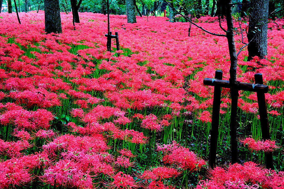 Berikut adalah beberapa spot menawan untuk melihat bunga red spider lily di daerah Kanto.