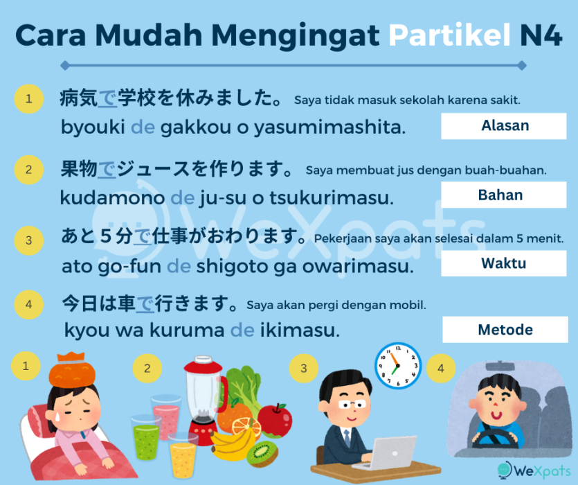 Kali ini kami akan menjelaskan beberapa partikel N4 beserta arti dan penggunaannya, serta contoh soalnya.