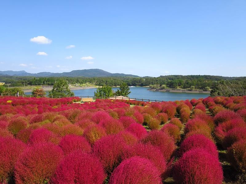 Banyak bunga, mirip dengan Indonesia. Ya, walaupun jenis bunga yang mekar berbeda jauh sih. Prefektur Oita terkenal dengan bunga kochia. Kebun bunga berwarna merah cantik sekali.