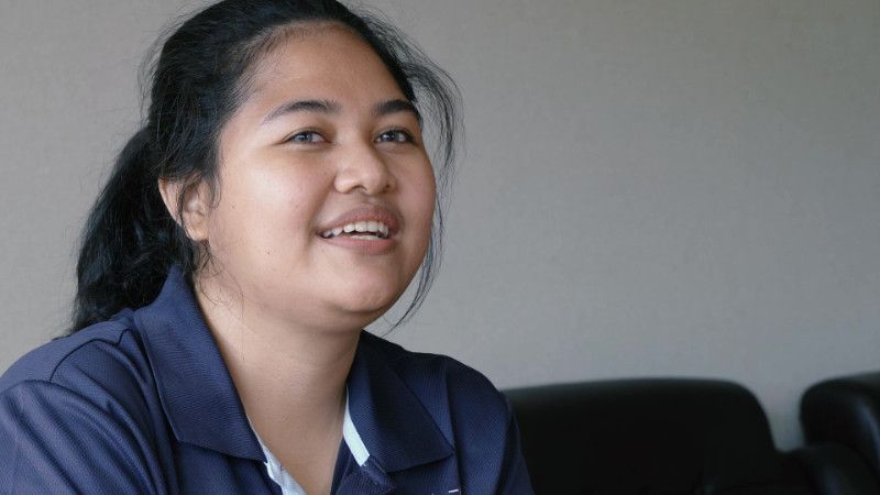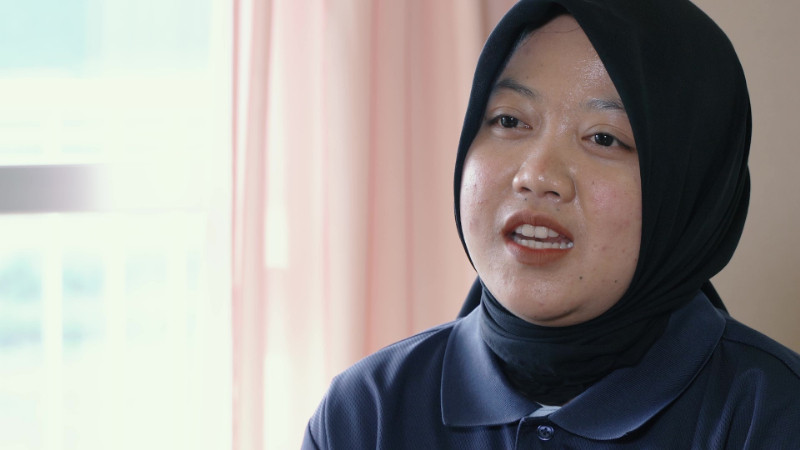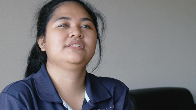 Saya Widyawati yang bekerja di tempat yang sama dengan Dani san. Usia saya 27 tahun, asal Pekanbaru. Saya beragama Buddha. Saya baru sampai di Prefektur Oita 3 bulan yang lalu, jadi gugup rasanya diwawancarai.