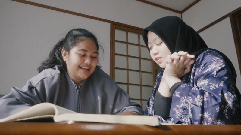 ▲Orang Indonesia yang bekerja di penginapan tradisional Jepang yang memiliki onsen. Mahasiswa asing di Prefektur Oita yang sedang melakukan internship.
