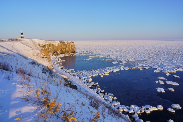 Es yang mengapung adalah salah satu atraksi musim dingin paling populer di wilayah Okhotsk. Dari atas kapal pesiar, pengunjung dapat melihat pecahan es dari dekat serta merasakan guncangan badan kapal ketika menghantam dan memecah es. Reservasi kapal pesiar bisa dicek melalui situs ini.