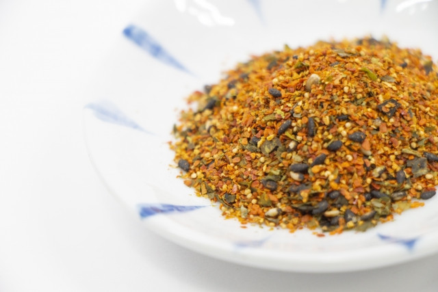 Shichimi togarashi, atau secara harfiah berarti "bumbu cabai tujuh rasa", adalah campuran rempah-rempah yang dibuat dengan lada merah dan lada sansho Jepang. Bahan-bahan khas yang bisa kamu lihat di shichimi togarashi termasuk cabai merah, biji wijen, biji rami, biji poppy, biji yuzu, rapeseed, jahe, kulit jeruk, dan rumput laut. Bumbu ini sangat beraroma, namun tidak terlalu pedas, karena masakan Jepang cenderung kurang pedas daripada masakan Asia lainnya. Jika dilihat-lihat, penampilannya sama seperti bumbu cabai kering di Indonesia. Shichimi biasa ditaburkan di atas mangkuk nasi donburi, mie soba atau udon.