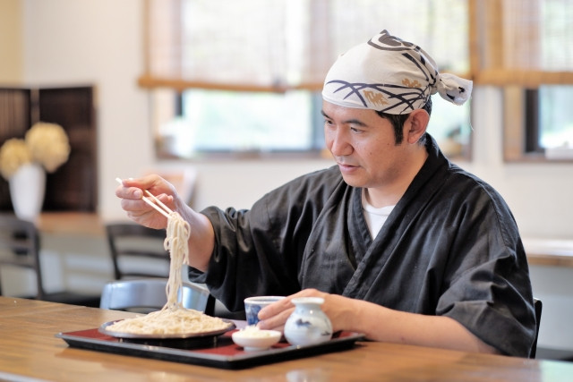 Mengambil mie dengan sumpit dalam jumlah sedikit dan memakannya dalam sekali suap. Di Jepang makan mie dalam sekali suap adalah cara terbaik menikmati mie yang disajikan.