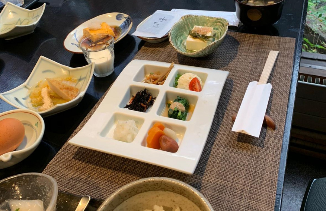 Jika kamu datang di musim gugur, kamu bisa menikmati sarapanmu sambil memandang indahnya daun momiji yang sudah memerah! Tentunya untuk bisa menikmati hidangan di sini, kamu juga harus menginap di Hakkei. Di mana lagi kamu bisa menikmati pemandian sumber air panas dengan pemandangan alam, kamar luas ala Jepang dan makanan sehat yang ramah muslim?