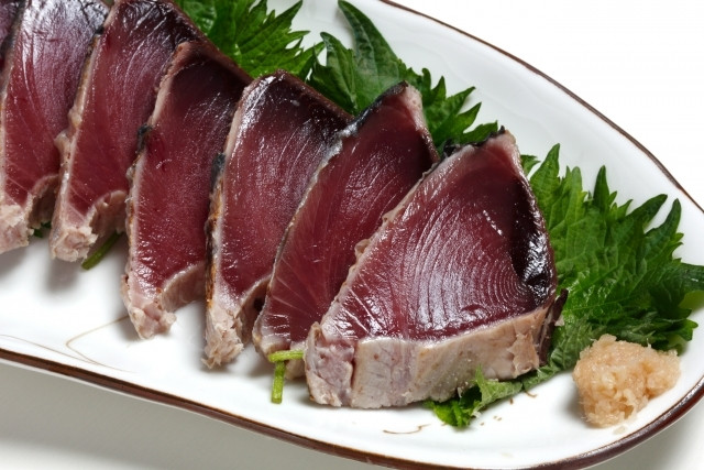 Memiliki nama Jepang katsuo 鰹 adalah ikan yang sekilas mirip dengan ikan tuna, dan dikonsumsi untuk dengan cara dikukus. Nama Jepangnya katsuo memiliki kemiripan dengan nama ilmiahnya yakni Katsuwonus.