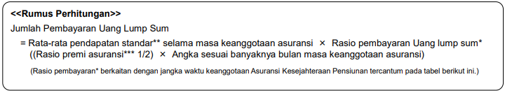 Jumlah pembayaran Lump Sum dihitung berdasarkan periode pendaftaran hanya di salah satu sistem pensiun, Pensiun Nasional (kokumin-nenkin/国民年金) atau Pensiun Karyawan (kosei-nenkin/厚生年金). Proses Pembayaran Penarikan juga hanya dapat di klaim oleh yang bersangkutan secara langsung. Jadi, pastikan Anda memahami betul penerapan sistemnya dan jangan lupa untuk mengajukan permohonan.