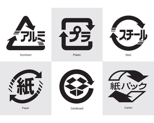 Pembagian sampah di Jepang memiliki 4 jenis kategori, yakni sampah bakar (可燃ゴミ), sampah non-bakar (不燃ゴミ), sampah daur ulang (資源ゴミ), dan sampah ukuran besar (粗大ゴミ). Mungkin kamu sudah tahu bahwa setiap barang produksi di Jepang ditandai dengan logo seperti di atas. Penggolongan ini akan memudahkan kita ketika akan membuangnya. Setelah mengetahui jenis bahan baku sampah, kamu tinggal memilahnya ke dalam 4 jenis kategori sampah sesuai aturan yang berlaku. Berikut kategori sampah rumah tangga di Jepang.
