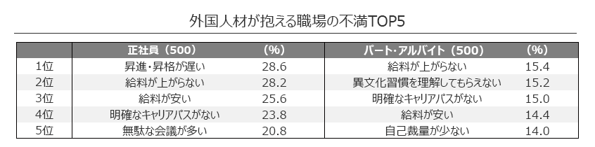 Kami mengutip hasil survei yang dilakukan Persol, badan survei kondisi kerja WNA di Jepang, yang dirilis tahun 2020 terhadap 500 karyawan tetap dan 500 orang pekerja paruh waktu dengan golongan usia 18-59 tahun. Survei mencatat faktor yang menyebabkan ketidakpuasan karyawan tetap berwarga negara asing adalah proses promosi di perusahaan Jepang tergolong lambat dan memakan waktu terlalu lama. Faktor tersebut merupakan jumlah presentase terbanyak kedua, yakni sebesar 28.6%, setelah faktor gaji yang tidak kunjung naik (28.2%).