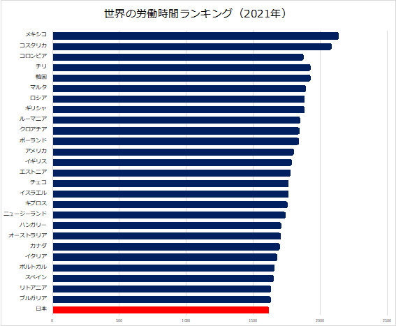Hasil data ini jam kerja per bulan karyawan tetap yang mengacu pada semua sektor industri kecuali pertanian, kehutanan, perikanan dan pelayanan pemerintah. Namun, perlu dicatat bahwa peringkat di atas mencakup pekerja paruh waktu dan karyawan non-reguler, dan tidak termasuk lembur. Grafik menunjukkan seolah ada penurunan pada jam kerja di Jepang. Tapi sebenarnya penurunan angka tersebut salah satunya disebabkan oleh kenaikan jumlah pekerja paruh di Jepang.