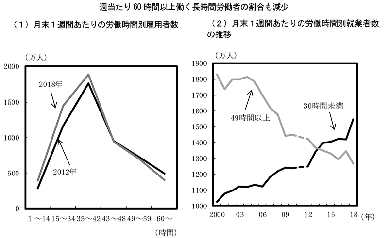 Dari data yang dihimpun dari kabinet Jepang (内閣府), saat ini semakin banyak ibu rumah tangga di Jepang yang memutuskan untuk bekerja paruh waktu. Sementara jumlah pegawai tetap menurun dari tahun ke tahunnya. Ditengah semakin menurunnya tingkat kelahiran di Jepang dan meningkatnya jumlah usia non produktif, penduduk usia tua juga banyak yang memilih untuk tetap bekerja dengan jam pendek. Hal ini juga dianggap sebagai alasan yang menyebabkan jumlah jam kerja di Jepang secara luas menurun.