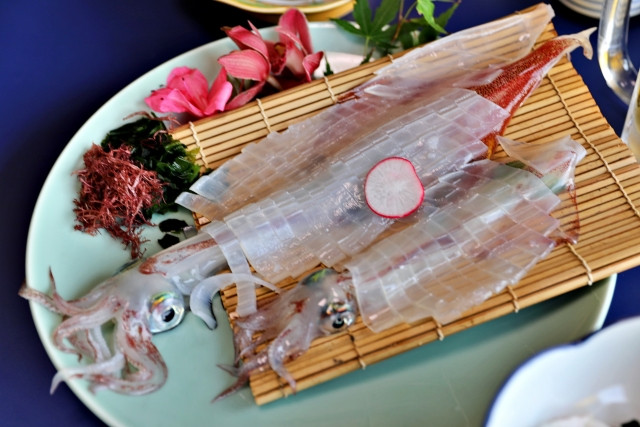 Berikutnya ada cumi Yobuko dimana Yobuko ini merupakan nama distrik di kota Karatsu. Menu cumi ini bahkan sangat populer di seluruh Jepang. Daging cuminya unik karena transparan, padat, dan rasanya manis. Biasanya jenis cumi ini dikonsumsi sebagai sashimi.