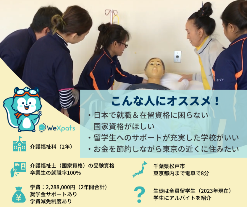 今回は千葉県で最も伝統のある介護福祉科の学校「松山学園松山福祉専門学校」を紹介。