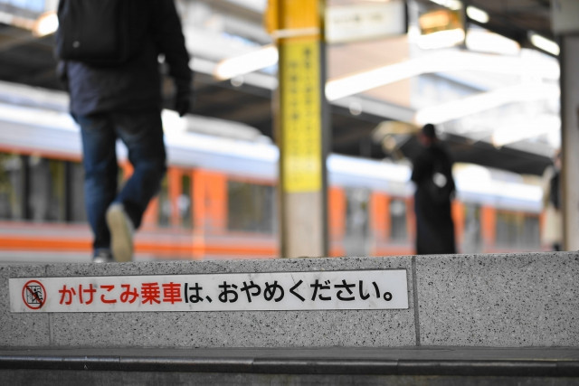 ‘뛰다’, ‘달리다’라는 뜻의 ‘카케루(駆ける)’, 어느 공간으로 들어가는 뜻을 가진 ‘込む(코무)’의 명사형 ‘코미(込み)’가 합해진 ‘카케코미(駆け込み)’. 거기에 ‘승차’가 더해진 ‘카케코미죠샤’는 열차 문이 닫히려는데도 무리하게 뛰어 들어 탑승하는 것을 말합니다. 타고 내리는 승객이 많은 대도시의 전철에서는 다른 손님에게 피해를 줄 수 있고, 무엇보다 정말로 위험!