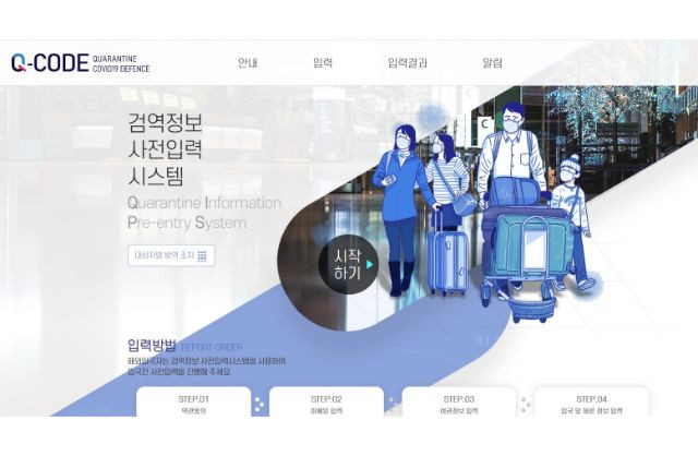 - 한국 입국 후 격리 면제를 위해 등록이 필요한 질병관리청 Q-CODE의 홈페이지에 접속, '검역정보 사전입력 시스템'에 '입국전 사전입력'을 진행