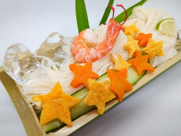 마침 소면이 실과 같다 보니 직녀가 베를 짜는 이미지와도 잘 어울리고, 은하수의 이미지도 같고 있어 칠석을 기념하는 요리로 안성맞춤인 듯합니다. 참고로 소면을 세는 단위는 '타바(束)'입니다.
