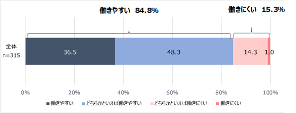 응답자의 70.1%가 일본에서 계속 일하고 싶다, 또는 확실치는 않지만 일본에서 일하고 싶다고 생각하고 있었습니다. 응답자의 19%는 계속 일하고 싶다고도 일하고 싶지 않다고도 대답할 수 없다고 했고, 응답자의 10.8%가 일본에서 일하고 싶지 않다는 쪽으로 응답했습니다. 일본에서 일하고 싶지 않다고 확실히 답한 것은 응답자의 1.6%였습니다.