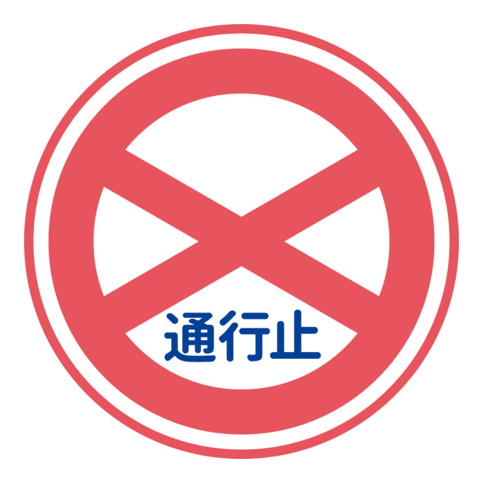 ‘통행 정지’ 표지로 ‘츠코도메’라고 읽습니다. 이 표지가 있는 모든 차량과 보행자가 통행할 수 없습니다.