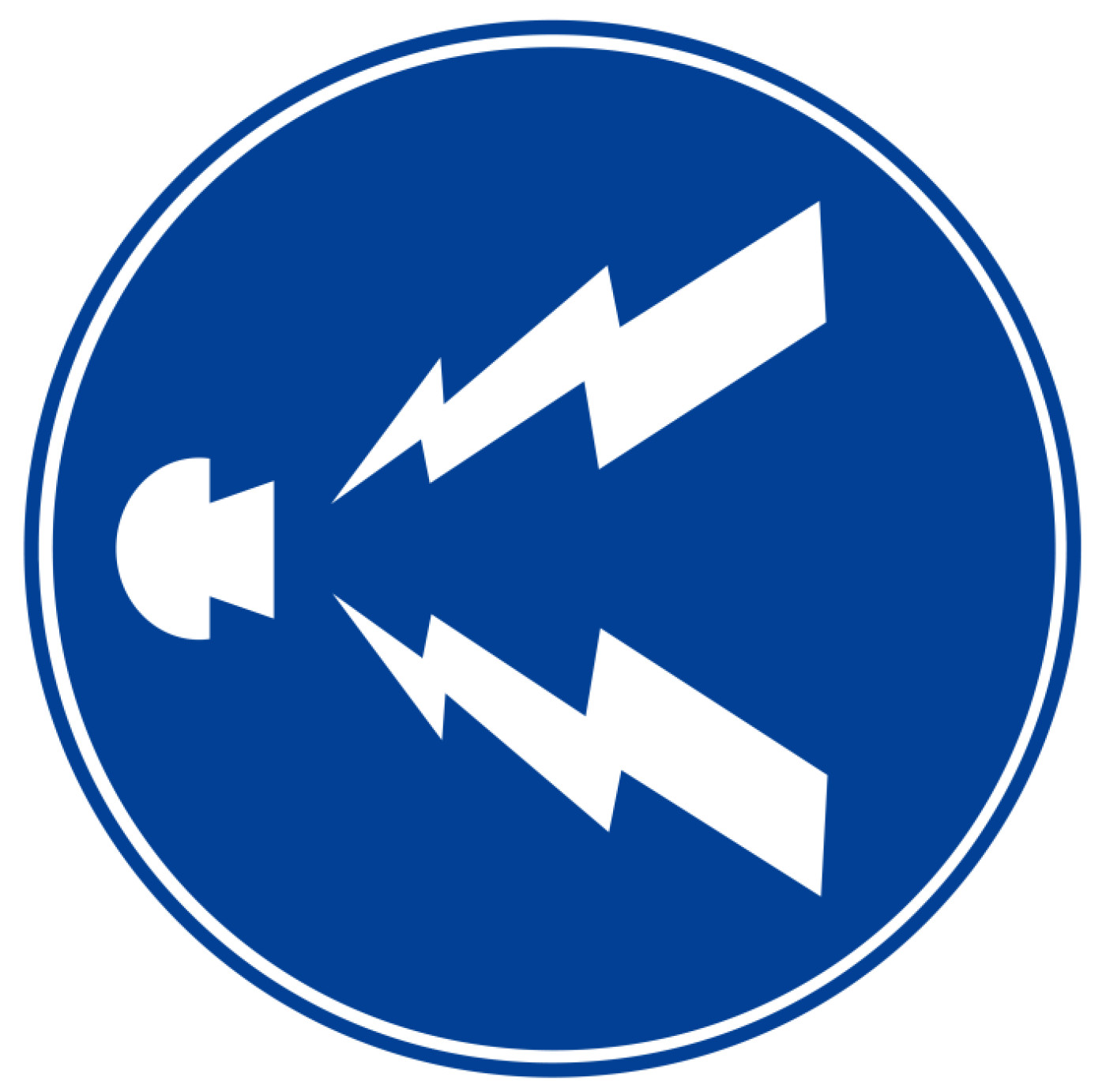 일반적인 표지는 아니지만 의미를 알아두면 좋습니다. ‘클랙슨, 즉 경적을 울리시오’라는 표지로 표지에 따라 경적을 울려야 합니다. 좌우 시야 확보가 어려운 교차점, 굽은 길, 언덕 꼭대기 등에서 필요합니다.