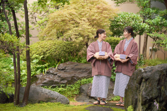 료칸에서는 ‘유카타(浴衣)’도 제공합니다. 방에 준비되어 있기도 하고, 스태프가 사이즈에 맞게 가져다주기도 하죠. 온천 목욕을 하고 나서 유카타로 갈아입어도 좋고, 체크인 후 유카타로 갈아 입고 온천으로 향해도 좋고, 언제든 입고 싶을 때 입어도 좋습니다. 료칸 안에서는 유카타 차림으로 돌아다닐 수 있어 이것이 또 즐거운 체험이죠. 단, 료칸 중 외부 손님도 이용 가능한 레스토랑을 운영하는 경우, 다른 손님들을 배려하기 위해 복장을 잘 갖추는 것이 매너일 수 있으니 주의해주세요. 또 하나, 유카타를 포함해 일본의 기모노(着物)는 남녀 모두 옷을 여밀 때 왼쪽 부분이 오른쪽 부분의 위로 올라오도록 여미는 것이 매너입니다. 일본어로는 ‘左前(히다리마에; 왼쪽이 앞)’으로 표현합니다. ‘왼쪽이 위!’ 잘 체크해주세요. 장례식에서 고인에게 옷을 입힐 때 오른쪽이 위(앞)가 되도록 하기 때문입니다.