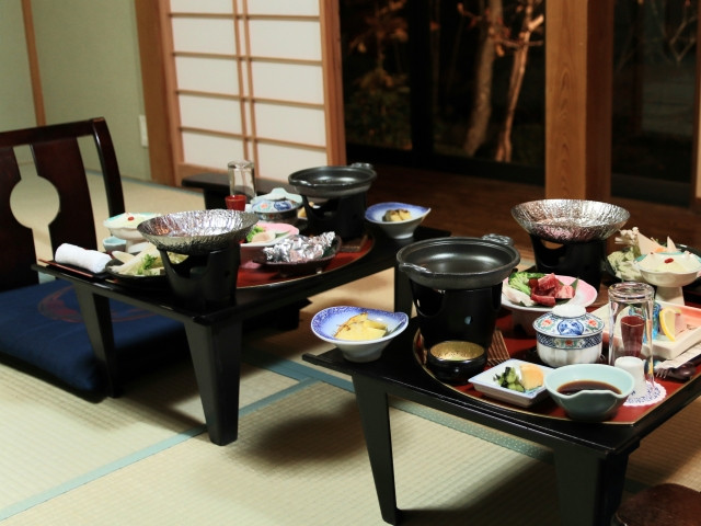 ・석식: 료칸에서의 석식, 조식은 방 안에서 먹는 경우, 식당에서 먹는 경우가 있습니다. 방 안에는 테이블에서 가져다주는 음식을 편안하게 즐길 수 있죠. 정리도 스태프가 해줍니다. 식당에서 먹는 경우에는 정해진 시간에 식사가 마련되어 있을 것입니다.