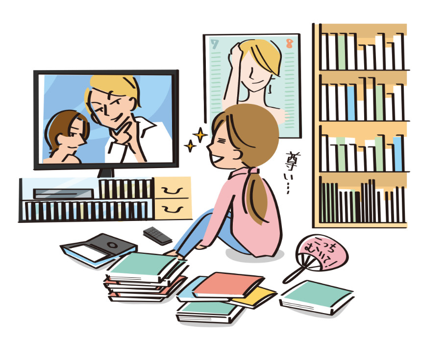 대표적인 것이 ‘推し(오시)’. 팬으로 응원하는 좋아하는 그룹, 좋아하는 아이돌 멤버를 말합니다. 아이돌의 음반, 관련 굿즈를 구입하고, 콘서트에 가고, 팬아트를 그리고… 팬으로서의 다양한 활동을 ‘오시카츠(推し活)’, ‘오시고토(推し事)’라고 합니다. 각각 ‘오시 활동’, ‘오시의 일’ 정도의 의미로, ‘오시고토’는 ‘직업’, ‘일’이라는 의미의 ‘오시고토(お仕事)’와 발음이 같아 재미있습니다.