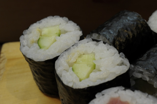 ‘갓파마키(かっぱ巻)’란, 오이를 넣은 노리마키(海苔巻き; 일본의 김밥)입니다. 한 입에 먹는 크기로 잘라서 제공되는 경우가 많습니다(아래 사진 참고).