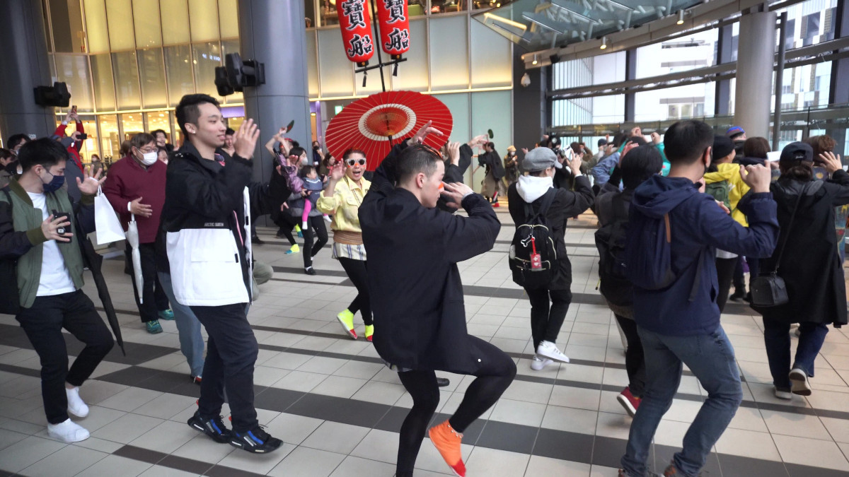 ▲2023년 3월에 열린 패션 브랜드 “HARE”와의 콜라보 퍼포먼스 “SHIBUYA AWA DANCE RUNWAY”. 시부야 히카리에(渋谷ヒカリエ)의 통로를 지나며 공연되어, 시설의 일반 손님들을 차례로 참여시키며 비오는 날 같지 않은 열광적인 분위기를 빚어냈습니다.