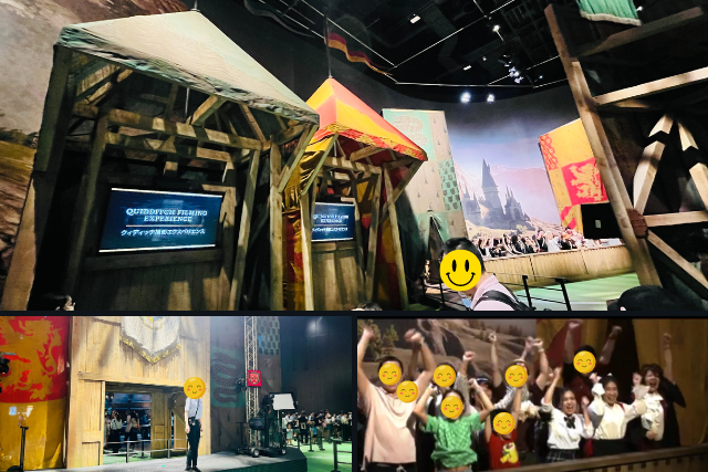 다음 액티비티는, 퀴디치 경기에 참여하기. 그리핀도르냐, 슬리데린이냐, 어느 한쪽을 선택해야만 하는데요. 감독님의 지시를 받으며 촬영에 참가합니다. 일본어로 설명되지만 걱정할 필요는 없습니다. 감독님이 직접 뭘 어찌해야 하는지 시범을 보여주십니다.