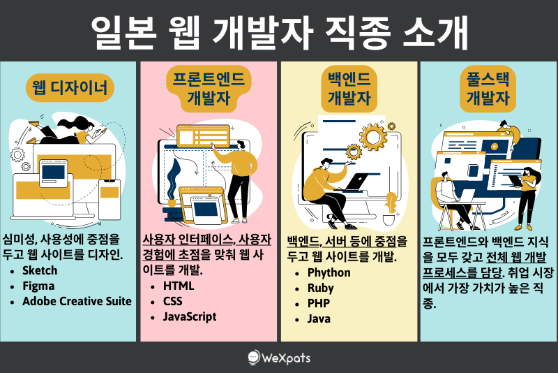 일본 개발자 직종: 프론트엔드, 백엔드, 풀스택, 디자이너