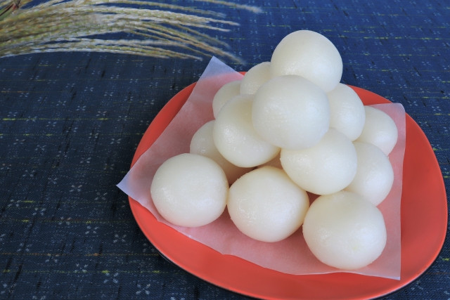 츠키미당고(月見団子)는 십오야의 가장 대표적인 음식으로 십오야와 관련된 사진이나 일러스트에 반드시 빠지지 않고 등장합니다. 달의 신에게 감사하며, 장수와 건강, 다음 해의 풍년을 기원하는 의미를 갖고 있습니다. ‘십오야’에는 15개, ‘십삼야’에는 13개의 당고를 담습니다. 가을에 수확되는 쌀을 가루로 빻아 동그란 달 모양의 떡을 만들었던 것이 츠키미당고의 유래. '三方(산보)'라고 하는 공양물을 올리는 작은 나무 상에 흰 종이를 깔고 삼각형이 되도록 쌓습니다. 예전에는 큰 당고가 길하다고 여겨져 4.5cm 크기로 만들었다고 합니다.