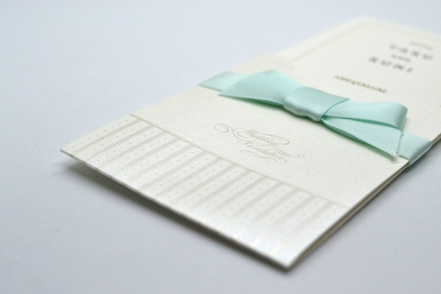 홍백, 또는 금은의 ‘結び切り水引(むすびきりみずひき; 무스비키리 미즈히키)’가 인쇄된 봉투가 결혼식 축의금 봉투로 많이 사용됩니다. ‘미즈히키(水引)’란, 경조사에 쓰이는 봉투나 포장 등에 사용되는 매듭 장식을 의미하는데, 그중 ‘무스비키리(結び切り)’ 패턴은 결혼식 등 일생에 한 번 있는 경사에 쓰입니다.