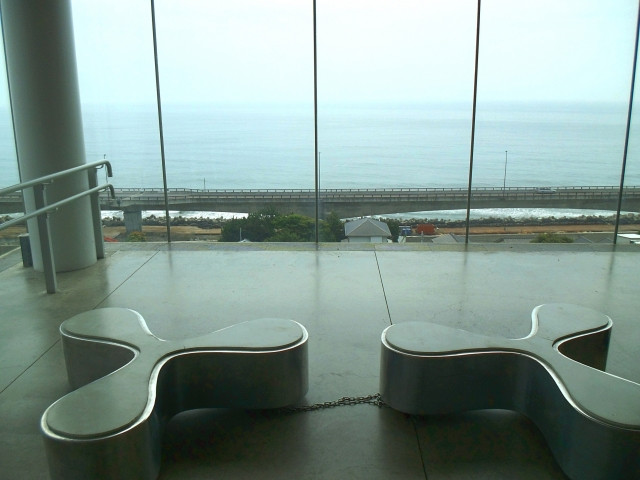 히타치역의 창문 너머로 바라보이는 드넓은 바다는 태평양입니다. 태평양을 품은 히타치역의 건축 콘셉트는 ‘바다의 존재감을 가깝게 느낄 수 있는, 고향을 느낄 수 있는 장소(海の存在感を身近なものとし、ふるさとを感じさせる場所)’라고 합니다.