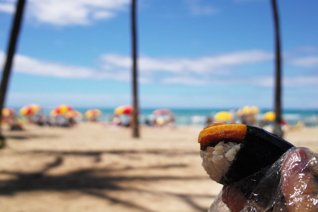 한낮에도 구르메는 계속됩니다. 오키나와에서는 오니기리도 특별한데요. 스팸 무스비, 스팸 오니기리, 포크 다마고 오니기리(ポーク玉子おにぎり), 포타마(ポーたま), 오니포(おにポー) 등으로 불리는, 스팸과 달걀부침이 들어간 오니기리는 어떨까요? 오키나와에서는 스팸(SPAM)이나 런천미트는 ‘포크(ポーク)’라고 불리며 일상적으로 애용됩니다. 태풍이 많았던 지역이라 비상식으로 중요한 역할을 담당했다고 하네요.