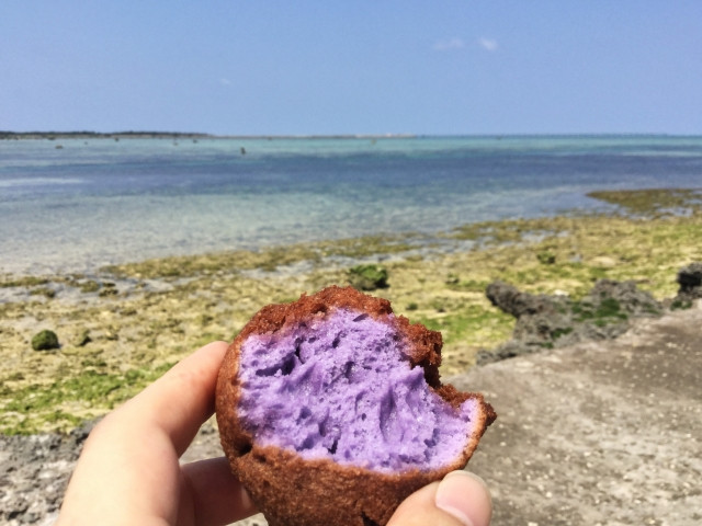 보라색 사타안다기를 본 적이 있다고요? 오키나와의 디저트에서 선명한 보라색을 발견했다면 ‘베니이모(紅芋)’, 즉 ‘자색고구마’일 것입니다. ‘무라사키이모(むらさきいも)’라고도 불리죠.