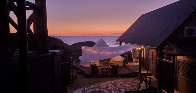 온천형: 캠핑에서 가장 걱정되는 부분인 ‘샤워시설’이었다면, 샤워시설은 물론 ‘수영장’, ‘노천탕’, ‘온천’까지 딸린 곳이 있다는 것이 글램핑의 매력! “グランピング”에 “温泉付き”, “露天風呂付き”, “プール付き”를 붙여 검색!
