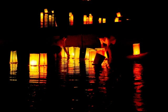 "토로나가시(灯篭流し)"는 불 밝힌 등롱을 오봉 음식, 장식과 같이 바다나 강에 흘려보내는, "오쿠리비(배웅 불)" 역할을 하는 행사입니다. 조상님들의 영혼이 등롱을 타고 강물을 타고, 바다로 흘러, 저승으로 돌아가시는 것이죠.