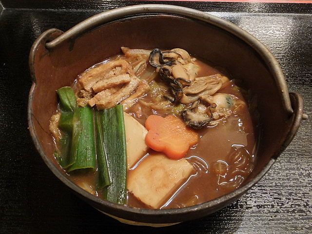 나베의 안쪽 가장자리에 된장을 발라, 굴(カキ), 두부, 야채 등을 넣고 끓이는 나베. 히로시마(広島)현의 나베 요리로 유명합니다. 본래는 굴을 넣은 ‘カキの土手鍋’를 말하지만, 일반적으로 된장으로 맛을 낸 나베를 ‘도테나베’, ‘도테나베풍(土手鍋風)’ 등으로 부르기도 합니다. 먹기 전에 된장을 입맛에 맛게 조금씩 국물 안으로 넣는 것이 특징!