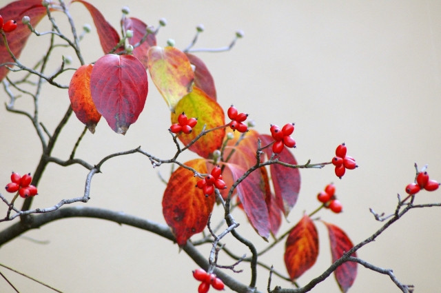 히토토 요(一青窈)의 유명한 노래 제목이기도 한 하나미즈키(ハナミズキ). 한국인들에게는 조금 낮선 나무 이름이기도 한데요. ‘산딸나무’라는 낙엽교목입니다. 일본에는 가로수로도 많이 심겨져 단풍을 즐기기 좋다고 합니다. 다이쇼(大正) 시대(1912~1926)에 미국에 벚나무를 증정하고 답례품으로 받은 나무가 ‘하나미즈키’였다고 합니다. 펼쳐진 동백 같은 붉은 꽃, 작고 동그랗고 빨간 크리스마스 분위기의 열매, 자연스럽게 물드는 잎. 앞으로 이런 나무를 보면 ‘하나미즈키’라고 알려줄 수 있겠죠?