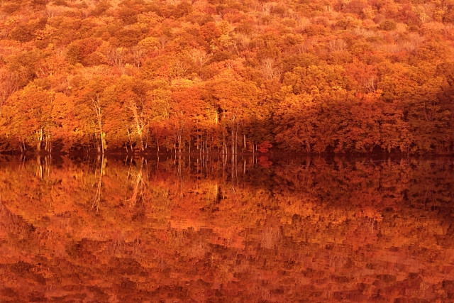 아오모리현에는 꿈처럼 아름다운 사진으로 유혹하는 단풍 명소 ‘츠타누마(蔦沼)’가 있습니다. 이름은 ‘츠타(蔦)누마’이지만, 이곳의 단풍은 (담쟁이가 아니라) 대부분 너도밤나무(ブナの木; 부나노키. ‘부나’라고도 함)입니다. 호수부터 하늘까지가 벽이라면 그곳에 담쟁이가 드리워진 듯도 합니다.
