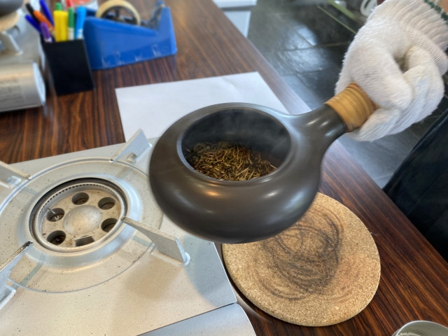 반차(찻잎+줄기)와 쿠키차(줄기)를 강불로 볶아 만듦. |