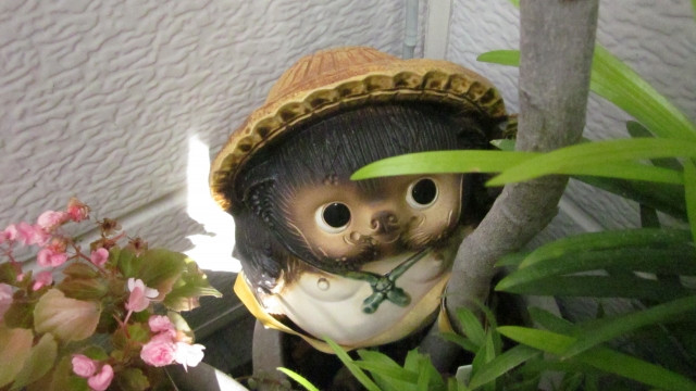 참고: ‘化かす(바카스)’란, 사람의 마음을 어지럽혀 정상적인 판단을 하지 못하게 하는 것. 일본의 옛이야기 속에서는 ‘여우’와 ‘너구리’가 사람을 속이는 이미지로 자주 등장함. 특히 너구리는 이야기 속에서 ‘변신술’을 능력으로 가지고 아름다운 여인으로 모습을 뒤바꾸거나, 돌을 돈으로, 똥을 음식으로 바꾸어 사람들을 속이는 장난과 술책의 상징. 이때 머리에 나뭇잎을 쓰고 있는 것으로 그려짐. 어느 옛 노래는 술을 좋아하는 너구리가 비오는 밤을 틈타 양조장에서 술을 훔쳤다고 노래했는데, 요즘은 골풀 삿갓(菅笠)을 쓴 너구리 조각 인형을 '복 너구리'로 여기며 문앞 등에 두고 있음. 너구리의 삿갓이 불행과 재난을 막아준다고 생각하는 것.