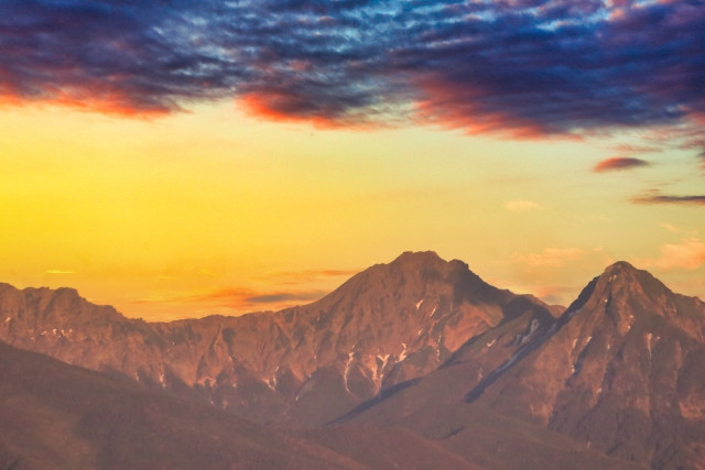 기타 알프스: 飛騨山脈 / 히다산먀쿠 / 히다 산맥: 도야마현, 니가타현, 기후현, 나가노현에 걸쳐 있음. 최고봉은 일본에서 세 번째로 높은 오쿠호타카다케(奥穂高岳, 표고 3,190미터).