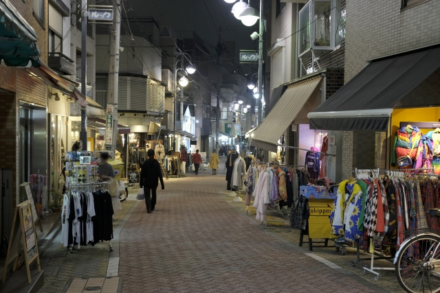 코엔지에는 좁은 골목에 상점들이 이어져 있는 ‘상점가(商店街; 쇼우텐가이)’들이 많습니다. 그중 남쪽 출구(南口)에 있는 ‘파루 상점가(パル商店街; pal)’와 ‘룩크 상점가(ルック商店街; Look)’에는 구제옷 점포들이 많이 자리잡고 있습니다. 일본어로는 ‘후루기(古着)’라고 하죠.